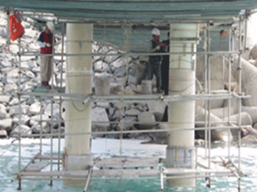 (해양 및 수중 콘크리트구조물의 안벽, 토류벽, 파일, 비말대, 교량의 교각 등의 수중 열화, 부식되거나 세굴된 부위의 보수보강)